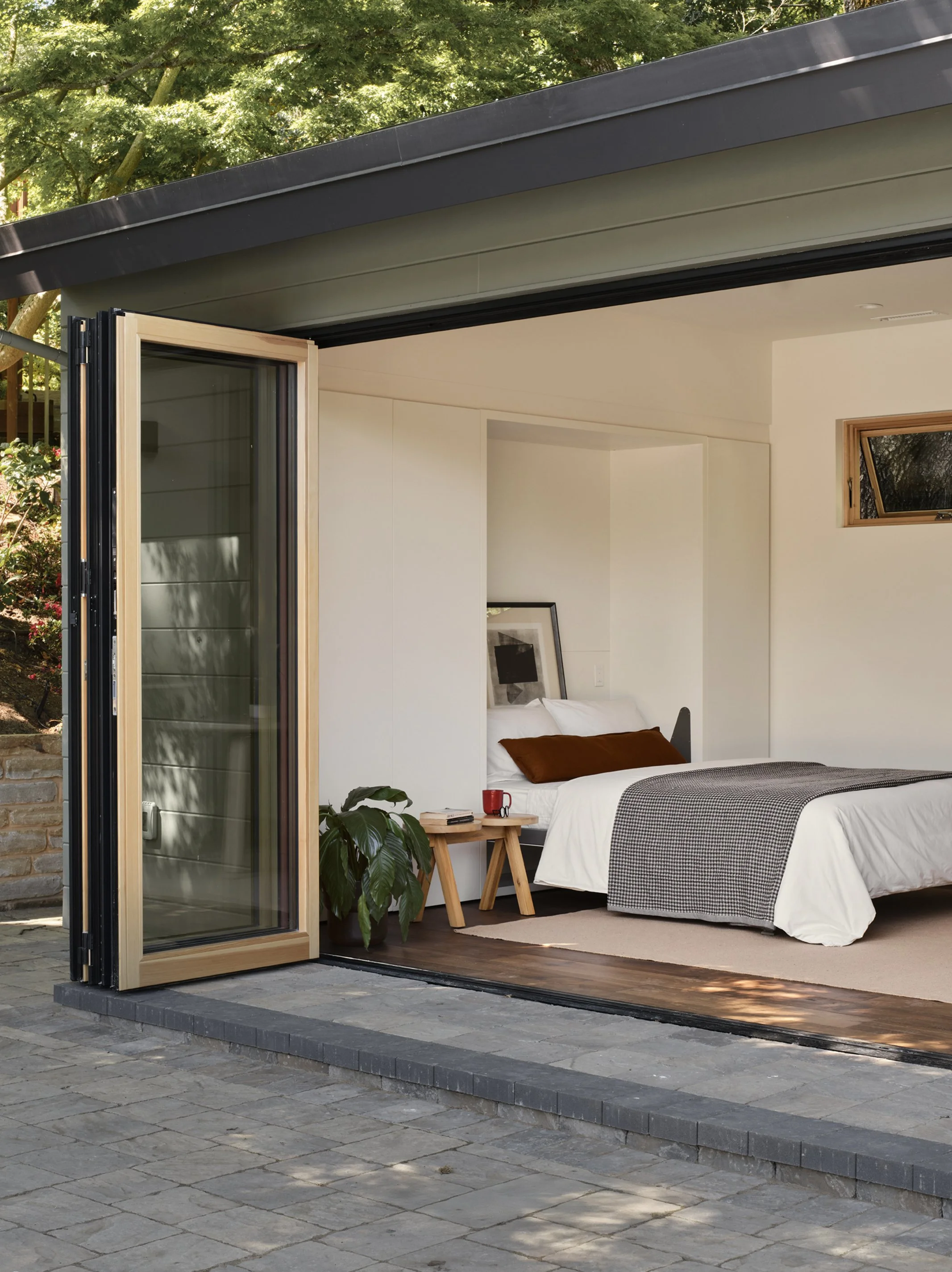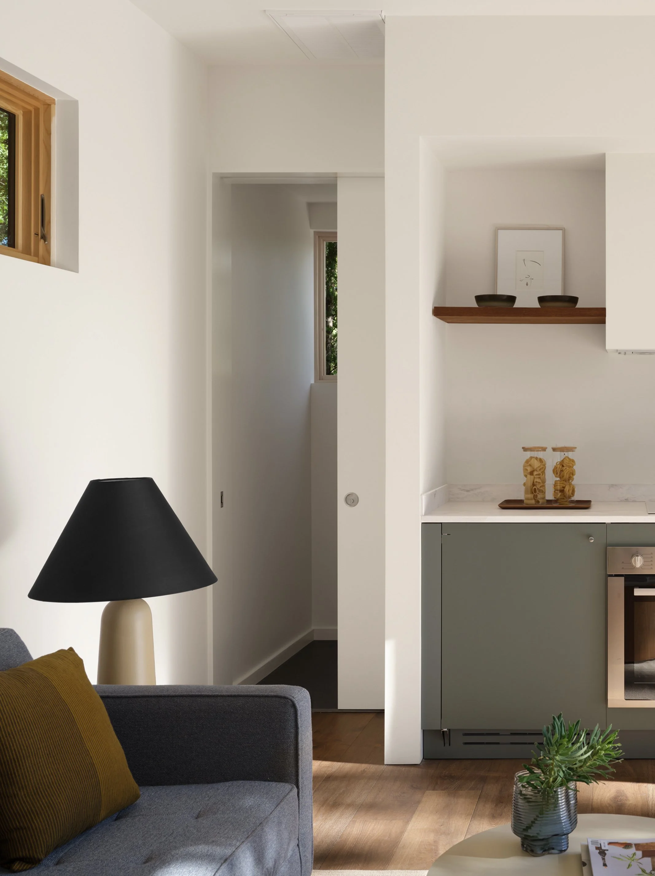 Bridging the divide between indoors and out, this custom ADU contains features of both a studio apartment and poolhouse. Styled as a guesthouse and entertaining space with poolside accents to highlight this unique detail.